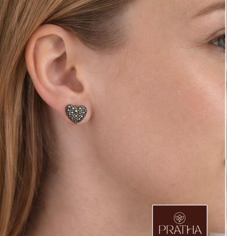 Par de brincos metal prata 925 escurecido brincos de tarraxas borboletas trabalho de marcassita e pirita formato de coração 11 milímetros aproximadamente acompanha certificado e flanela